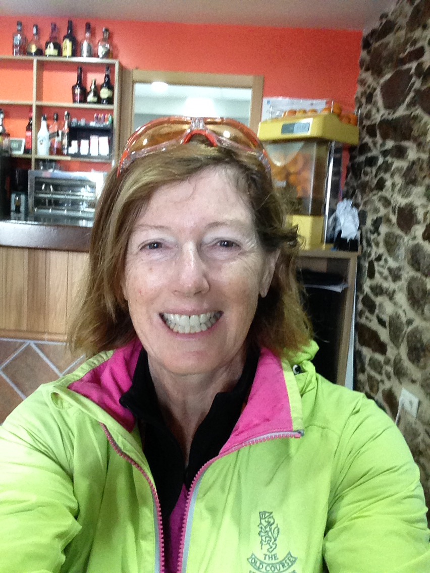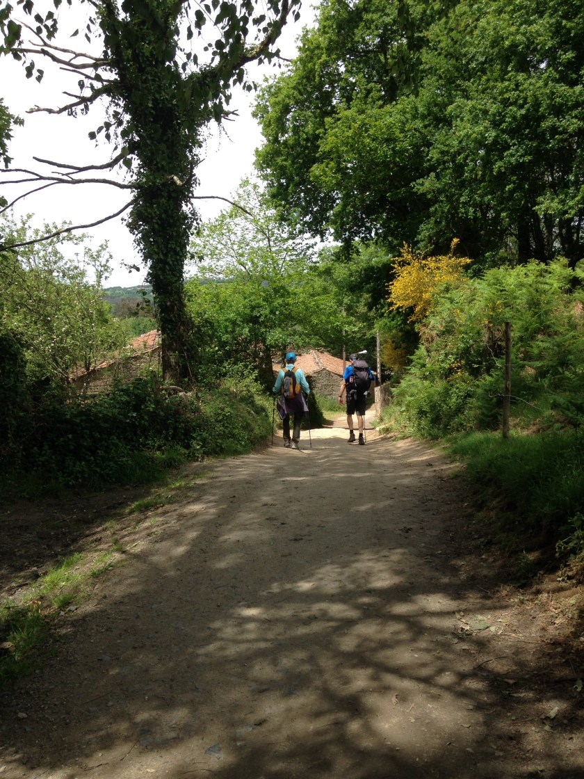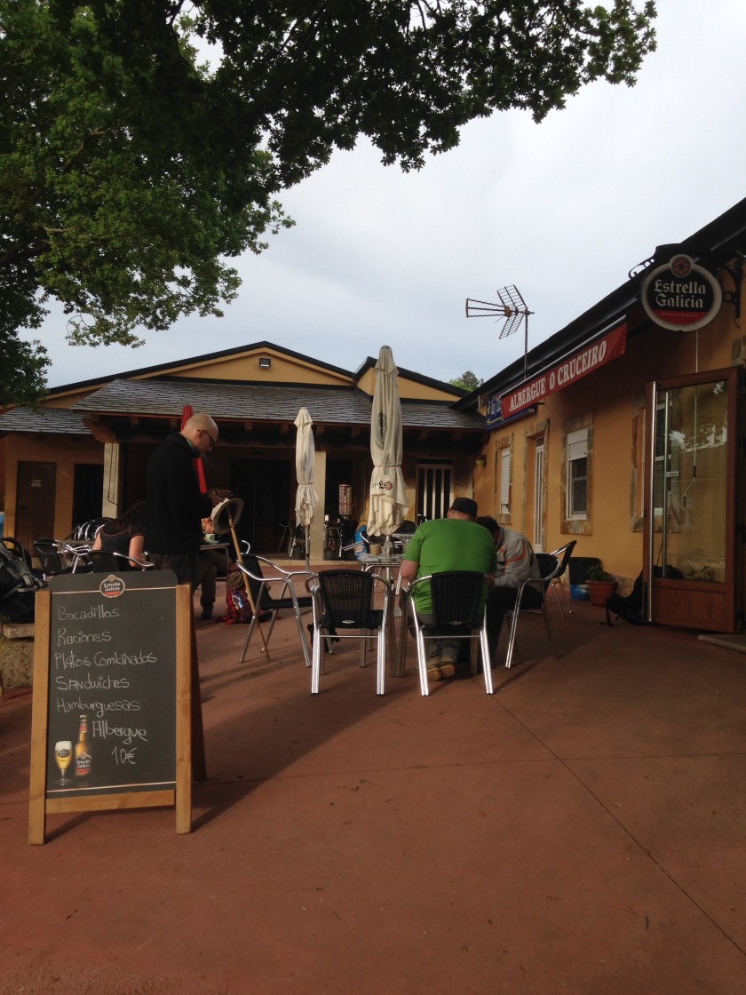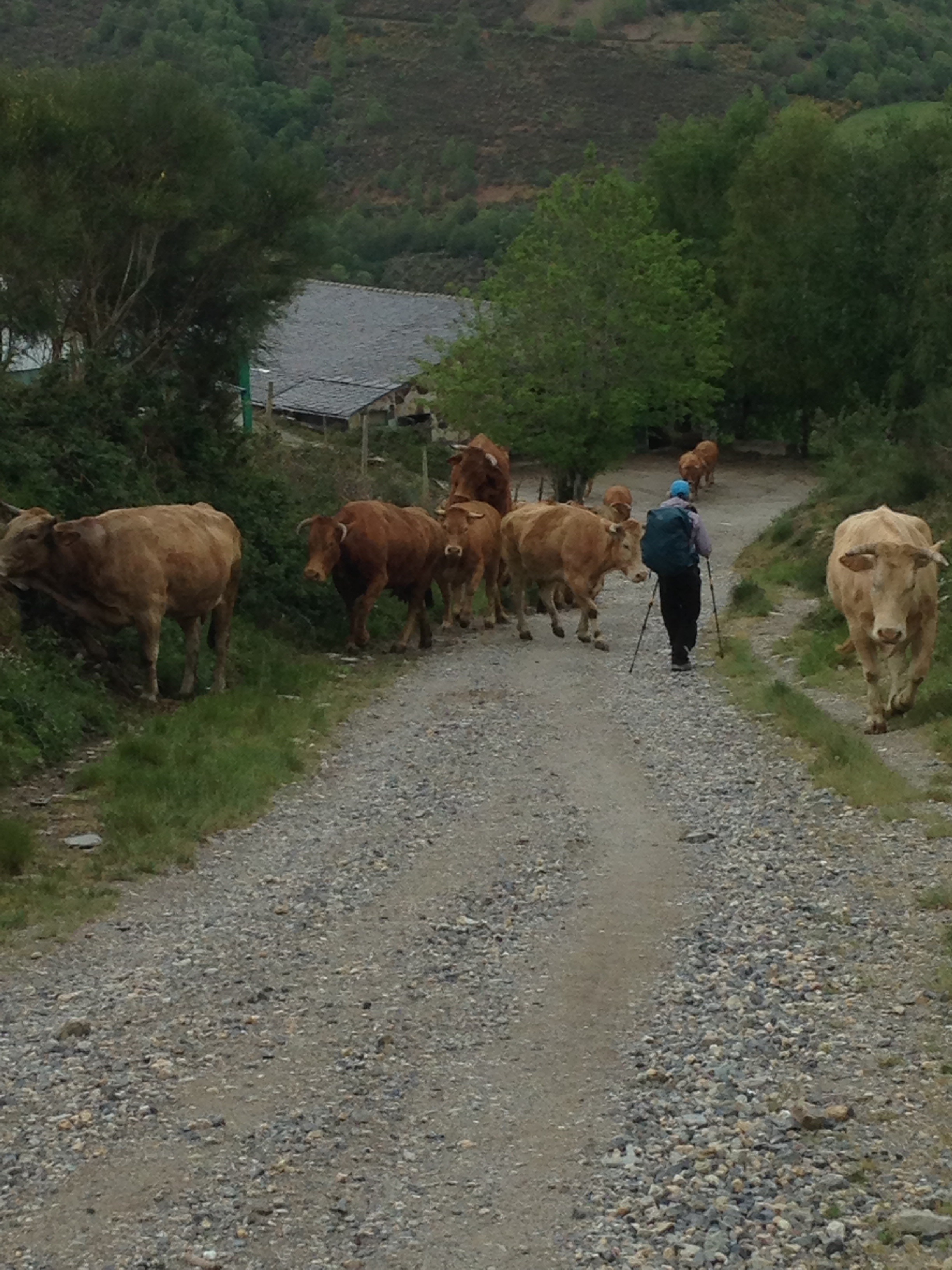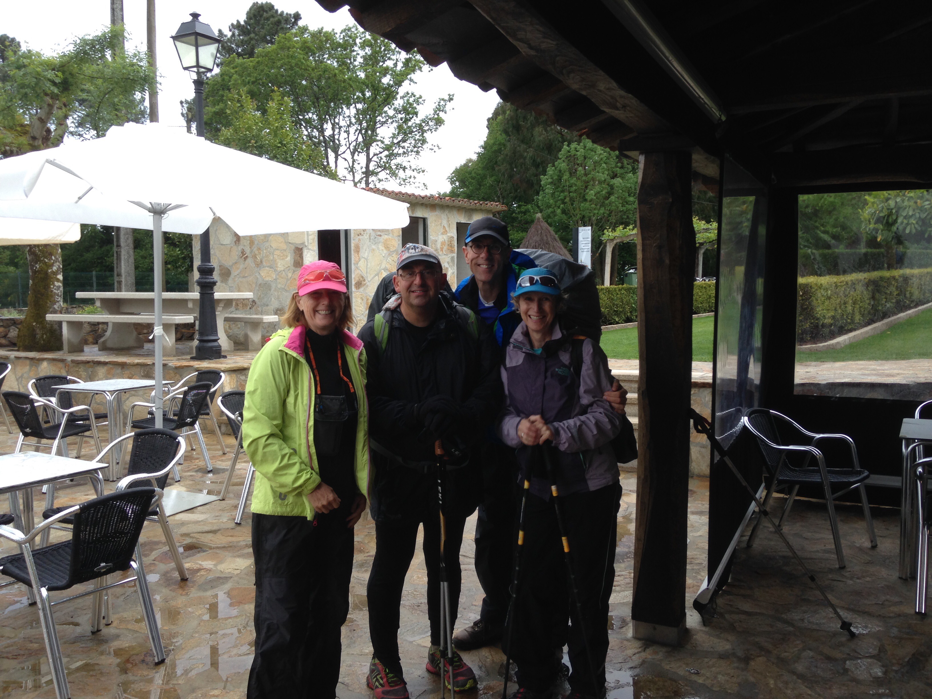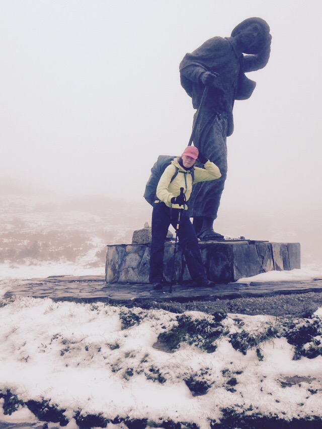 Our first 2km this morning was pretty much straight up to the Cruz de Ferro – a simple iron cross approximately 5,000ft above sea level. Many pilgrims have carried a stone from home or some other important to them spot to place at the foot of the cross. In leaving the stone, one metaphorically leaves a burden and/ or a token of love or celebration as we journey through our pilgrimage. As last year, my stone was from Balsam Lake where our cottage is and reflects on the peace and joy I always feel in the lovely cotttage country of Ontario. Also as last year, my prayer was one of thanks for the happiness that my life is and the blessings I have in friends and family.