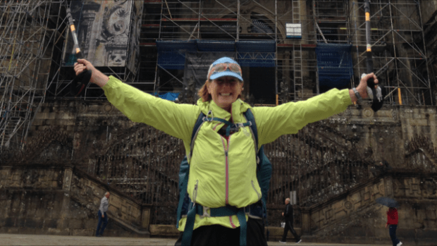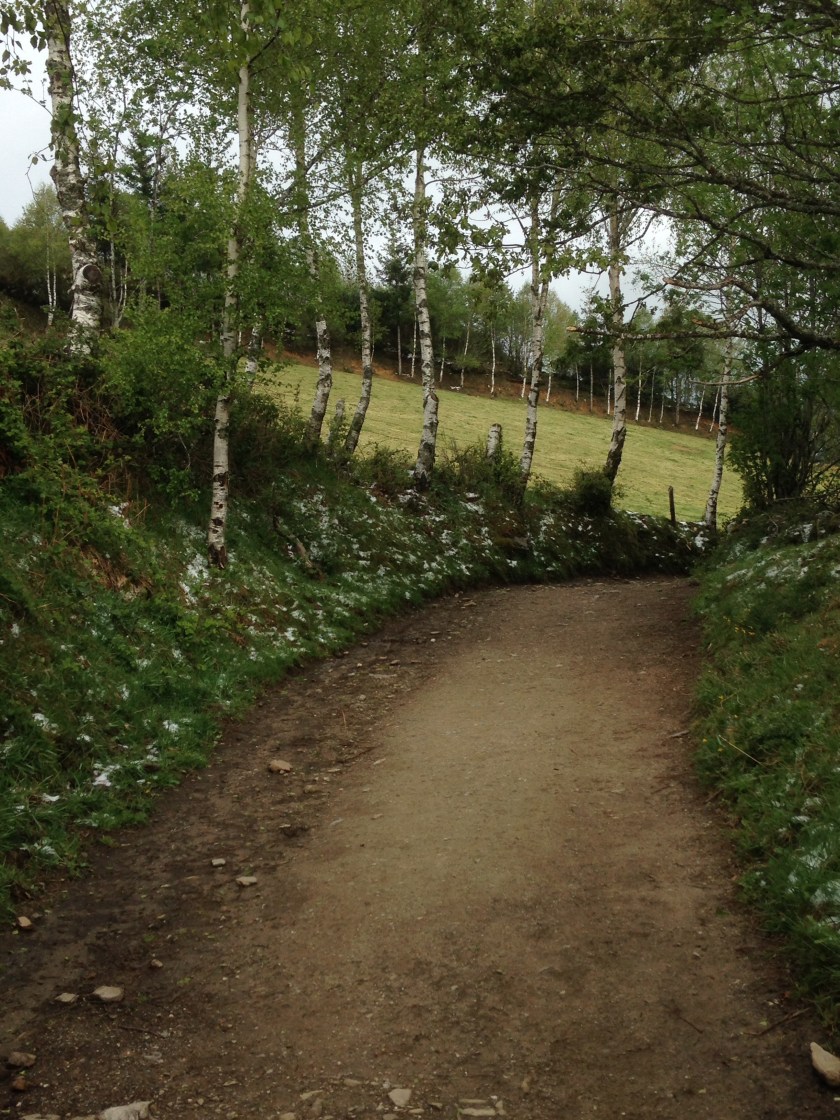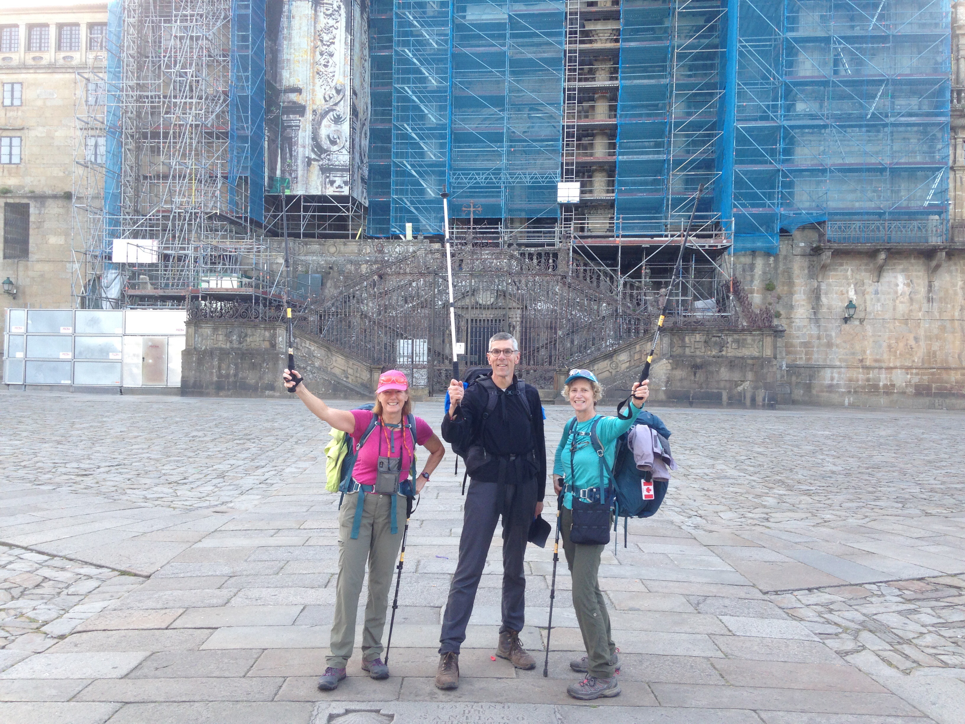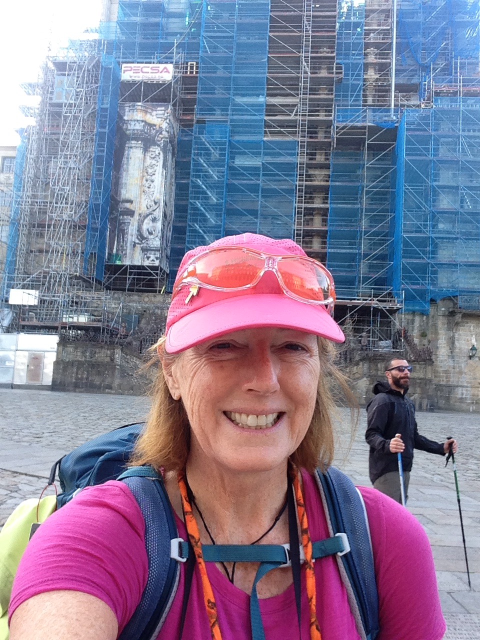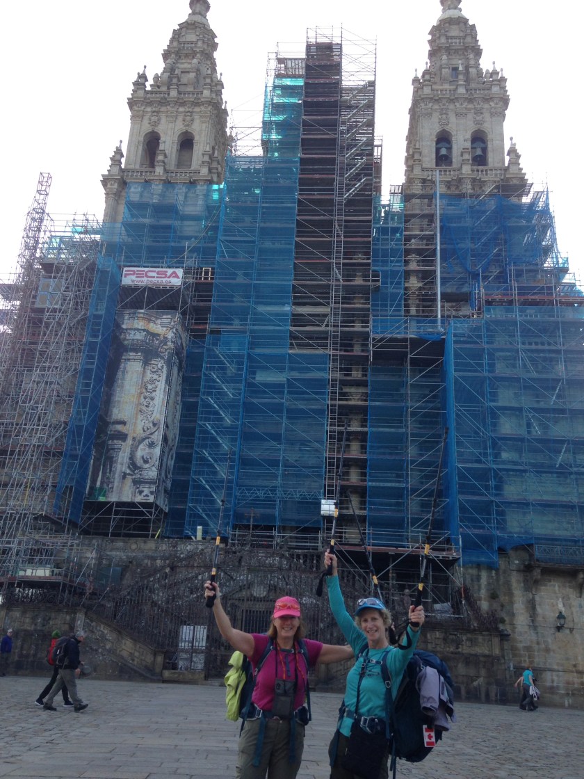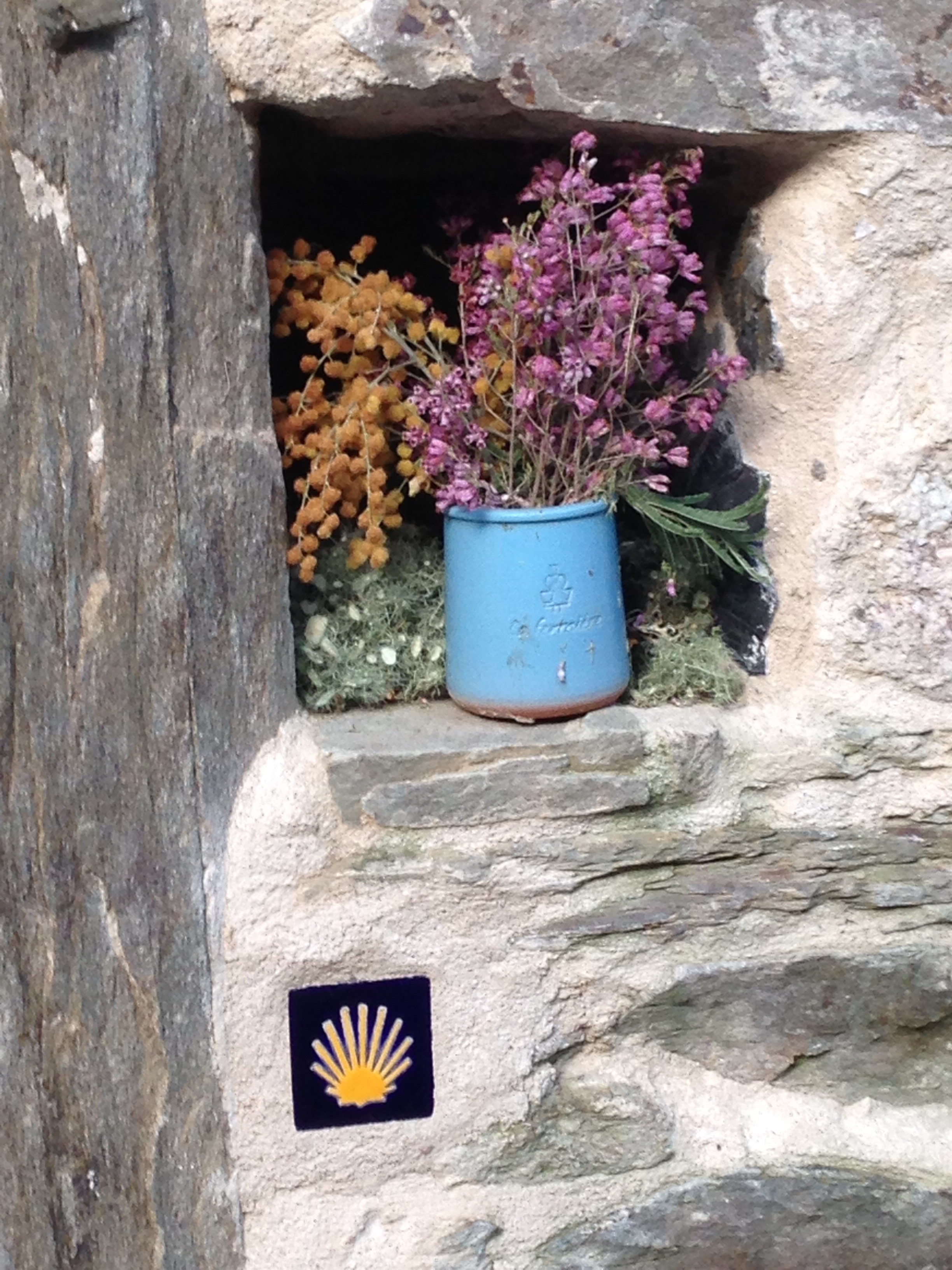 Our first 2km this morning was pretty much straight up to the Cruz de Ferro – a simple iron cross approximately 5,000ft above sea level. Many pilgrims have carried a stone from home or some other important to them spot to place at the foot of the cross. In leaving the stone, one metaphorically leaves a burden and/ or a token of love or celebration as we journey through our pilgrimage. As last year, my stone was from Balsam Lake where our cottage is and reflects on the peace and joy I always feel in the lovely cotttage country of Ontario. Also as last year, my prayer was one of thanks for the happiness that my life is and the blessings I have in friends and family.