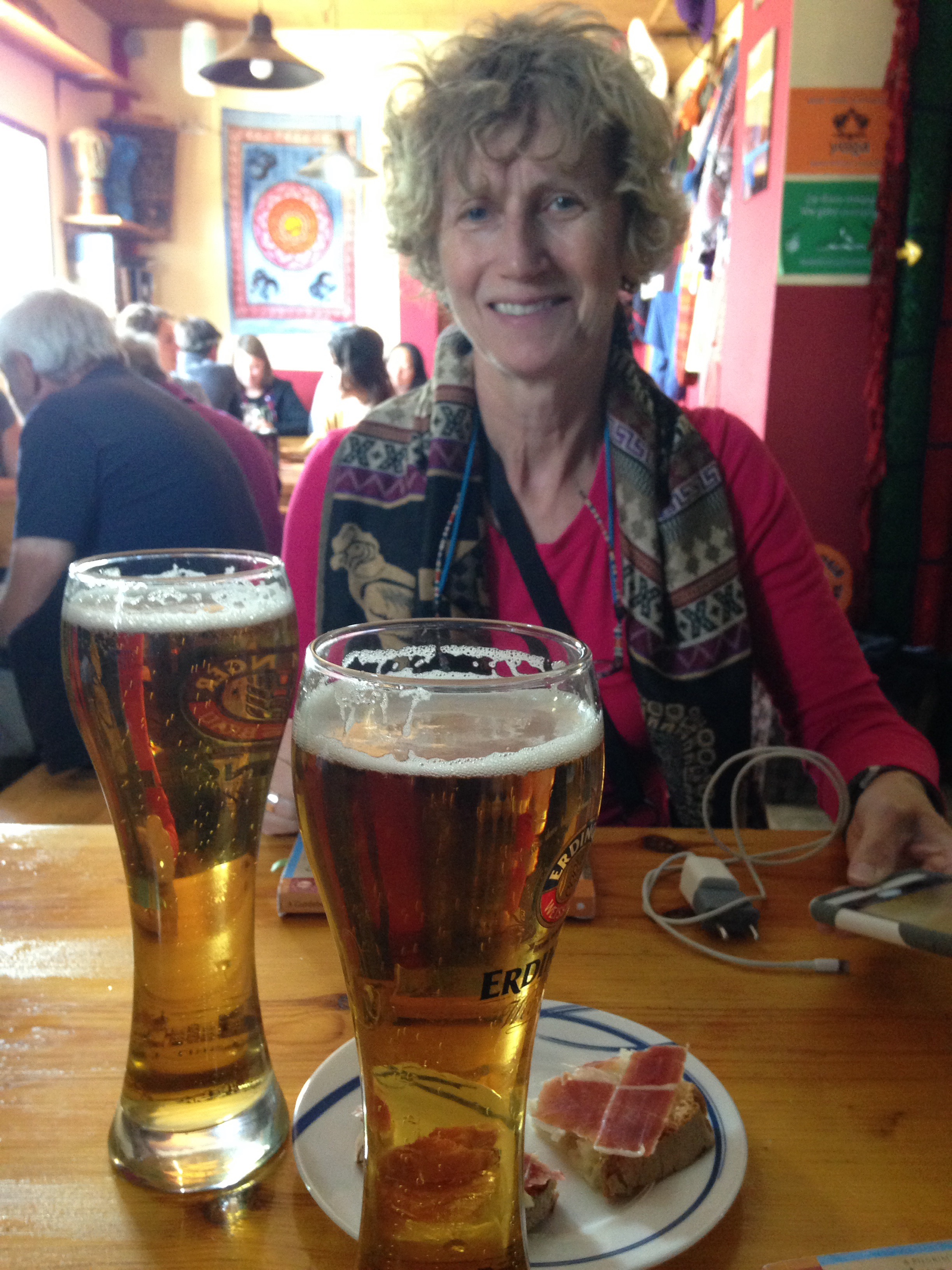 We arrived at our intended stop for the day far too early so pressed on a further 5km to Ponferrada. This is a great town and is home to the amazing Castillo de Los Templarios – the 12th century Templar castle. It is amazing and I am just as in awe of it as last year – but this year we managed to get in!!!!! It was great and still sent a shiver down my spine. I will confess however, that I can’t help but picture John Cleese looking down and taunting me with a French accent. I did make Rosemary watch the clip from the Holy Grail because she had to understand why I kept saying stupid things like “your mother was a hamster and your father smelt of elderberries”. She seemed mildly amused but perhaps only because I was laughing so hard. And I did make her watch the Dead Parrot sketch a few nights ago too.
