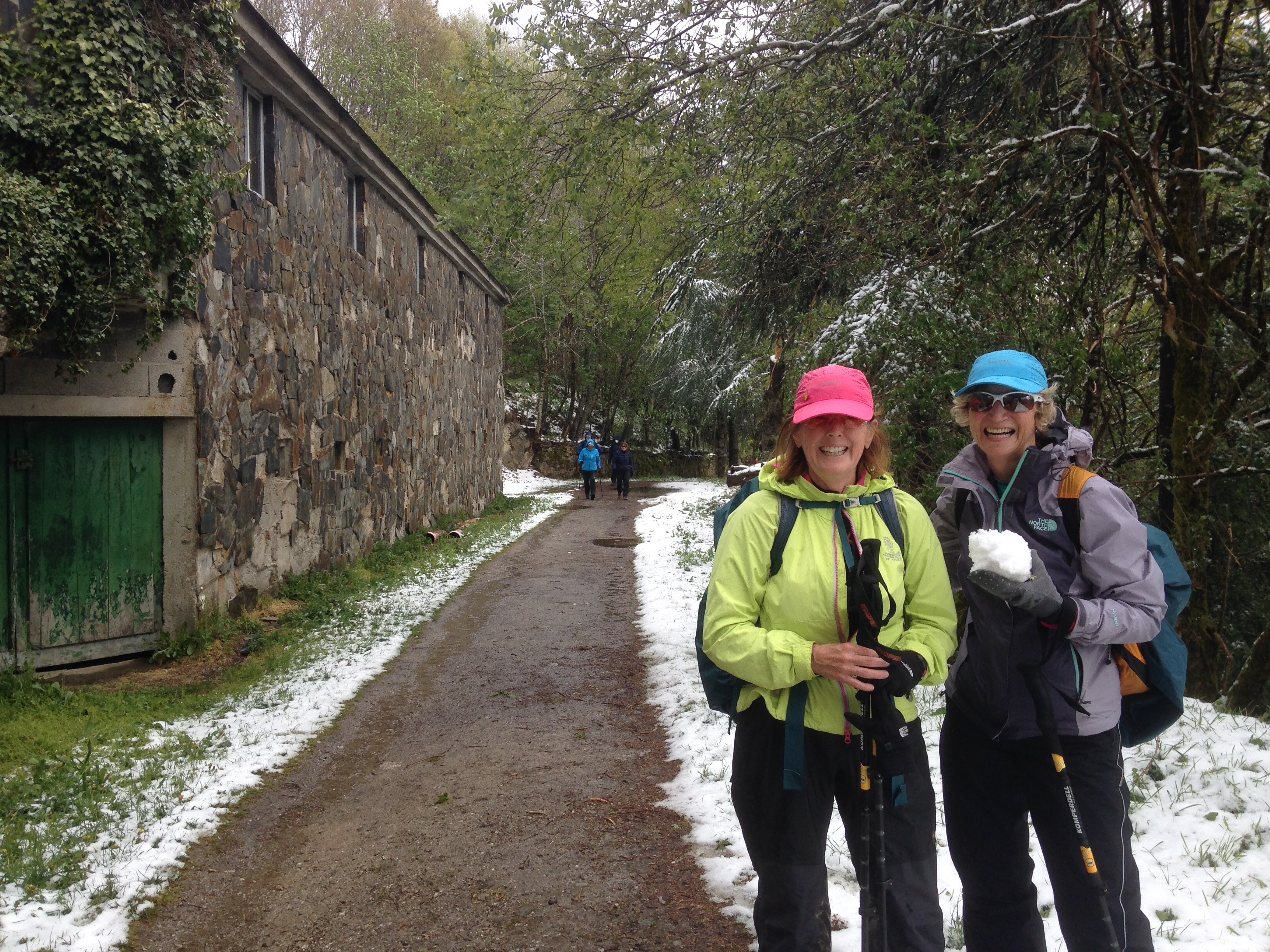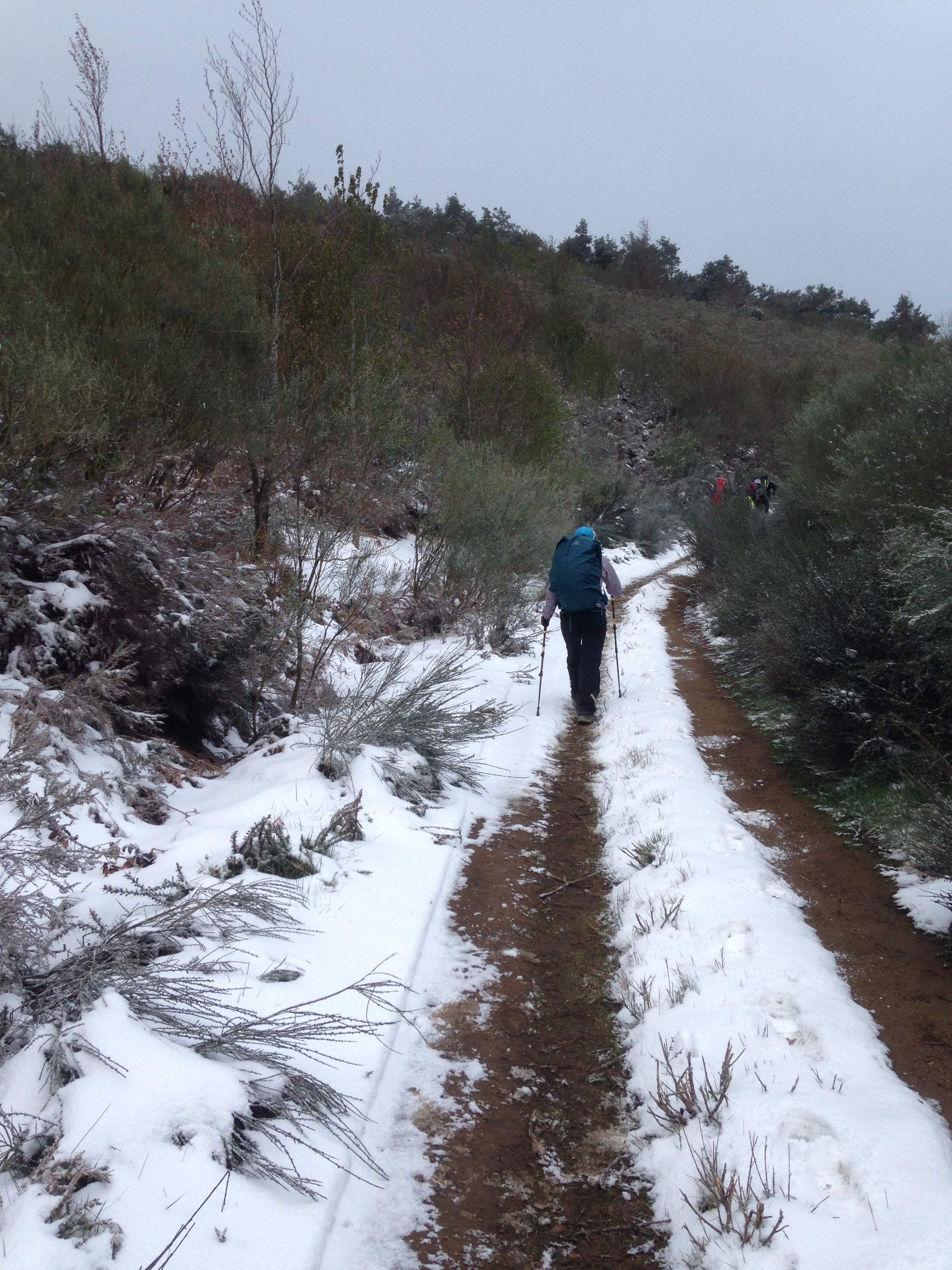 We got off on our start this morning around 7:30. Cold can hardly begin to describe the weather. It was probably around -5c (20f) and the wind was howling…and of course we were headed up over a mountain. Our knapsacks were light because we had most of our clothes on us. We both have very decent hiking gloves but it was so bad we had a spare pair of woollen hiking socks over top of them!!!